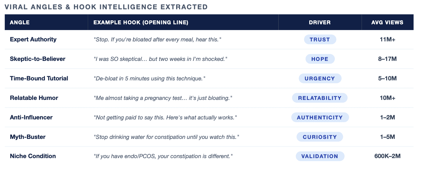 Analyzed 1,200+ active competitor ads from Facebook Ads Library
